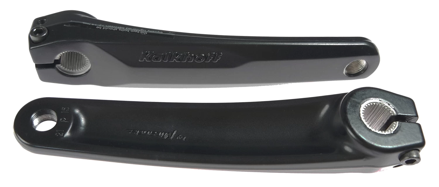 Originales Viel-Kant-Kurbel-Set von Kalkhoff für Elektrofahrräder mit Mittelmotoren der Marken Kalkhoff, Impulse, Raleigh und Panasonic.